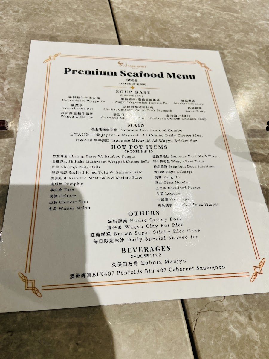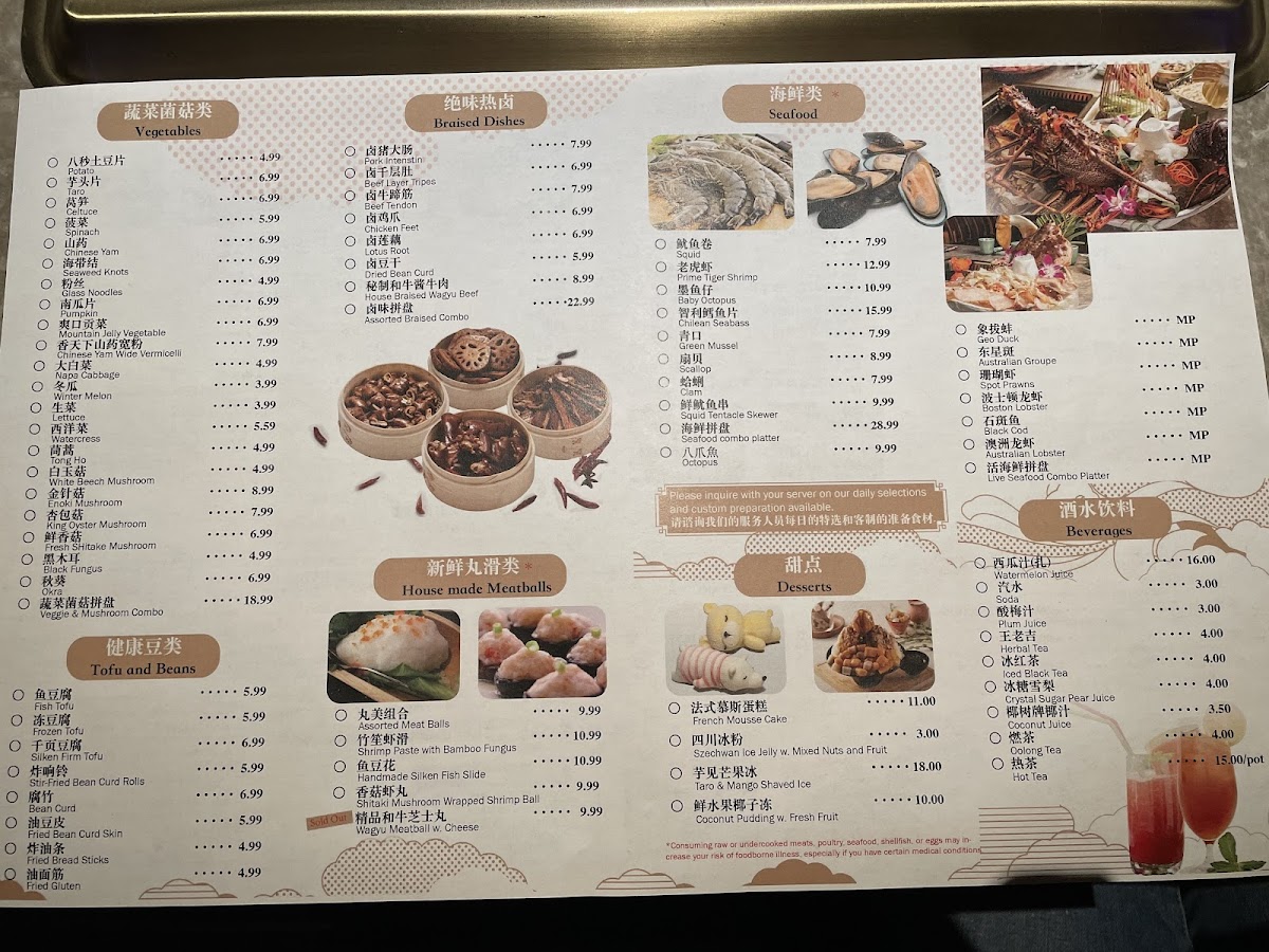 The restaurant specializes in premium hot pot, featuring an impressive selection of high-quality meats, including A5 Wagyu and imported Japanese Wagyu. Customers rave about the Chef’s Tasting for Two, which highlights the restaurant’s commitment to quality and flavor. The Golden Chicken Soup is a standout; its rich, savory profile beautifully balances the kick of spicy broth, allowing a symphony of flavors to dance on your palate. Whether you’re diving into the delightful Wagyu Beef Tripe or savoring the Black Fungus and House Signature Ham, every dish is crafted with precision and care.